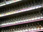 Měla jsem ale ještě jiné záměry: miluju kosatec a zelené listí v parfémech. Přeloženo do fetišů: mrkev, mrkvová semena, rajčatové listí. A zaujal mne Kitten Fur, Kočičí kožíšek, jestlipak voní jako teplá, ulízaná kočička na klíně? Výběr probíhá tak, že si stoupnete k regálku, kde jsou lahvičky seřazené podle barev etikety a odhadujete, jakou barvou může vonět to, co nosíte v hlavě. Pokud nejste poučený zákazník, jako já a nejdete rovnou na věc… Tak Kočičí kožíšek nou. Prestože nevoní tak smrtelně, jako Chardon, když se po třech dnech vrátí s rozervanýma ušima ze záletů, s kočkou nic moc společného nemá – je to nasládlé pižmo, ani ne moc suché, připomnělo mi vanilkovou aviváž. Já jsem čekala suchý prach a bílé pižmo. Tohle tedy nenaplnilo mé představy.