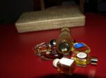No tak je to tady, ten slavný okamžik. Výběr vůní tradičních grasských parfumérů: Berdoues, Lucien Lelong, Corday, de Vigny v trochu ušmudlané krabičce. Turistické krabičky s výběrem „pařížských“ parfémů jsou dodnes oblíbeným suvenýrem. Dnes v nich bývá mAinstream od Coty, ještě nedávno Nina Ricci, Givenchy, Lavin a ještě dřív lahvičky plné grasských domácích medicín. A takovou jsem ulovila za pár korun na e-bayi já.