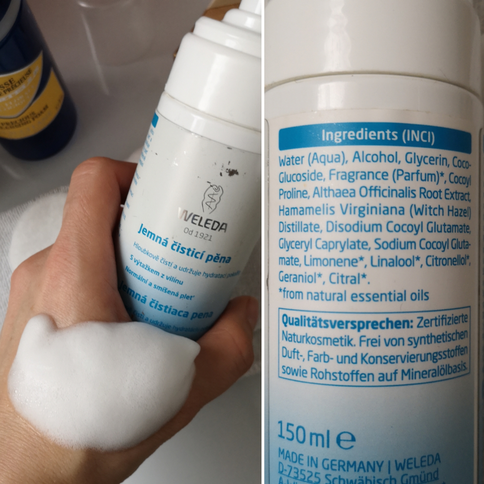 Pri zmývaní však nastáva zvláštny pocit a pleť pri tomto kroku akoby drhne o ruky a vŕzga – ako keď si z hlavy zmývate šampón. Vytvára to pocit, že pleť je dokonalo a až príliš vyčistená. Opak je však pravdou. Dokonalo neodlíči ani môj striedmy denný makeup. Moja pleť je o niečo viac pocitovo stiahnutá, než pri použití ostatných mnou vyskúšných pien. Následne (po dočistení iným prípravkom) však používam toner a krém /olej, čím nastává komfort.