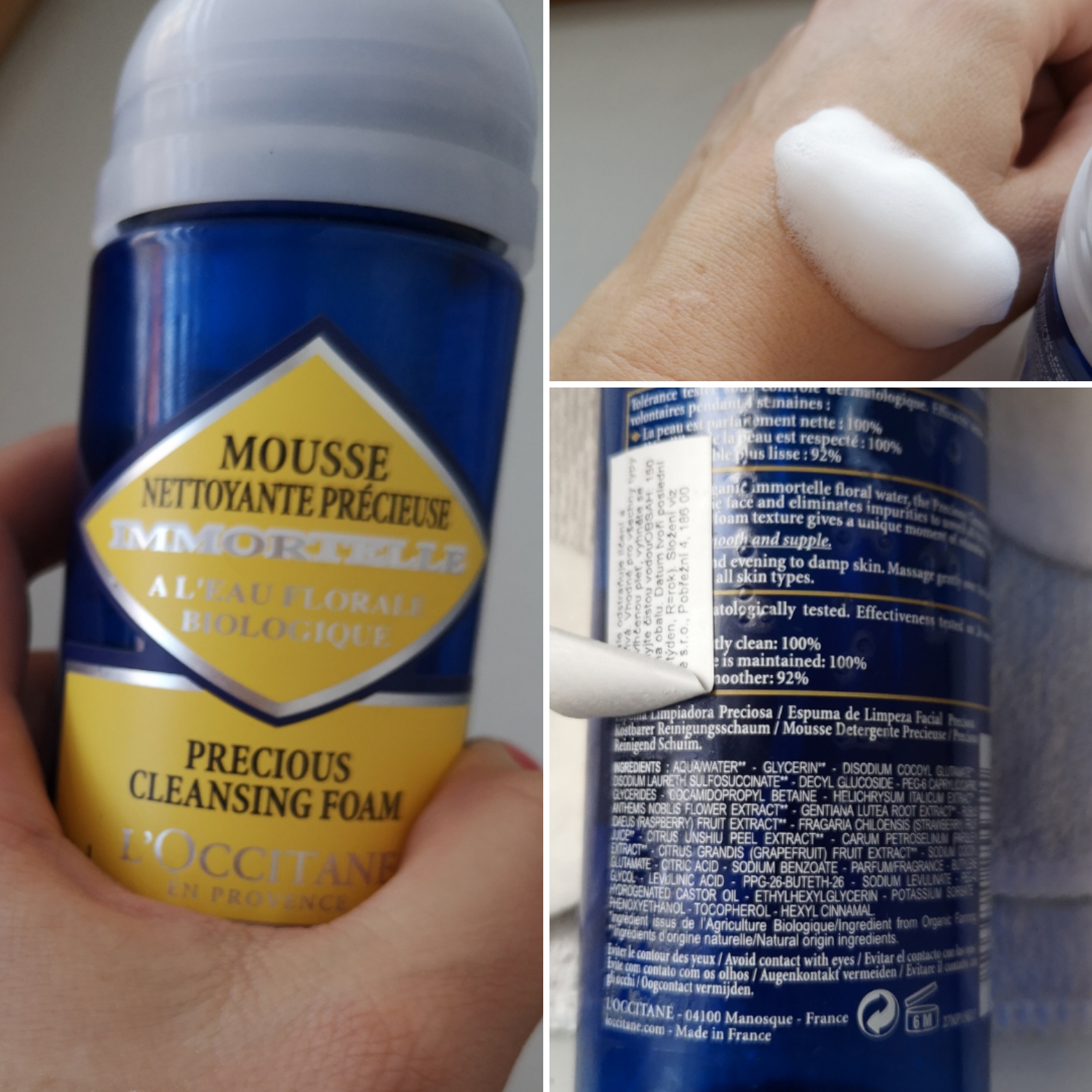 Veľa žien tvrdí, že im čistiace peny na tvár nevyhovujú, pretože následne cítia diskomfort, pálenie a začervenanie. Ja podobný problém nemám. Buď nemám toľko citlivú pleť, alebo je to tým, že si produkty pred kúpou dôkladne vyberám. U L’Occitane to ide. Áno, aj čističe. V predajni majú umývadlo, vatové tampóniky a testery všetkých prípravkov. Doporučujem to využiť. Raz som tak vošla do predajne namaľovaná a odišla odmaľovaná. Pochodila som po nákupáku a keď som zistila, že pleť je s penou OK, vrátila som sa po ňu. Navyše bola slamienková rada od L’Occitane v tej dobe mojou hlavnou starostlivosťou o pleť. “Matching” pena bola len otázkou času.