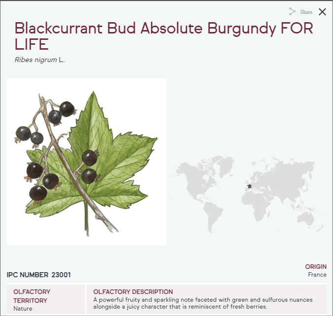 Dnes je k dispozici 258 LMR ingrediencí, většina z nich ze zelených částí rostlin a pryskyřic (protože drtivá většina květin je němá, to už víme, kdo neví, nastuduje článek „Co to je … Němé květiny?“). Všechny si můžete prohlédnout na stránkách IFF, ale varuju vás – jakmile se do toho jednou pustíte, strávíte tam odpoledne. Ale krásné odpoledne! Věděli jste třeba, že na kilo extraktu z poupat černého rybízu se musí ručně posbírat 30 kilo těch drobečků? A že na 1 kg essence z narcisů je potřeba 2.500 kg (ano, 2,5 tuny) květů? To je ten důvod, proč narcis považujeme za němou květinu… zase nemůžeme mít všechno.