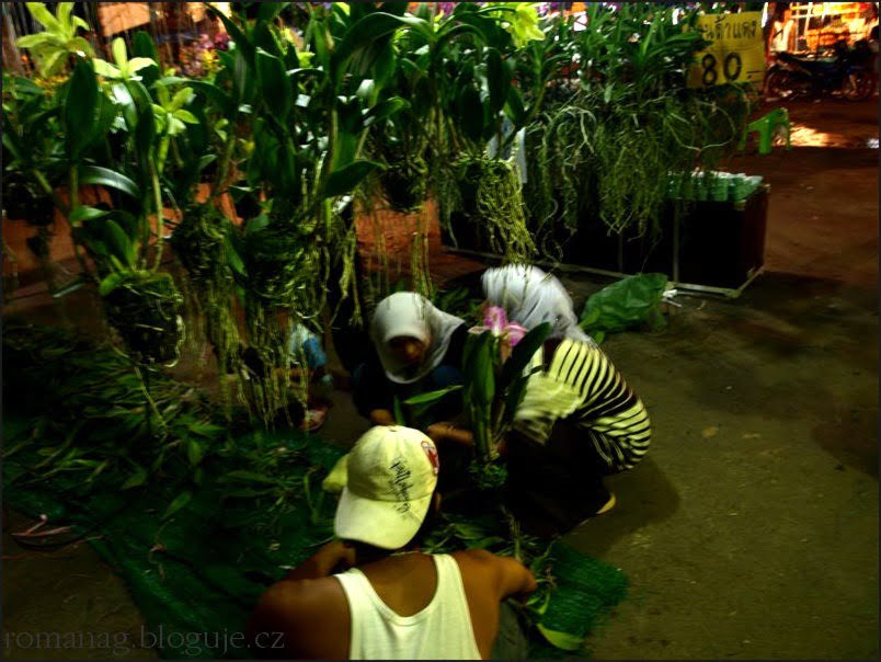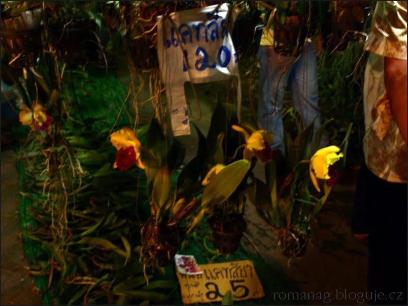Galerie: Abych vás neošidila, tak o co míň jsem napsala, o to víc dám obrázků: zázvor je květina vcelku nezajímavá a navíc už tady byl v galerii ze Spice garden na Srí Lance. Tak nabízím noční trh orchidejí v Krabi. Fotky z ruky (ve které jsem svírala tašku s novýma, ručně šitýma sandálkama), kvalita tedy nic moc, ale umělecký dojem, myslím, dobrý…