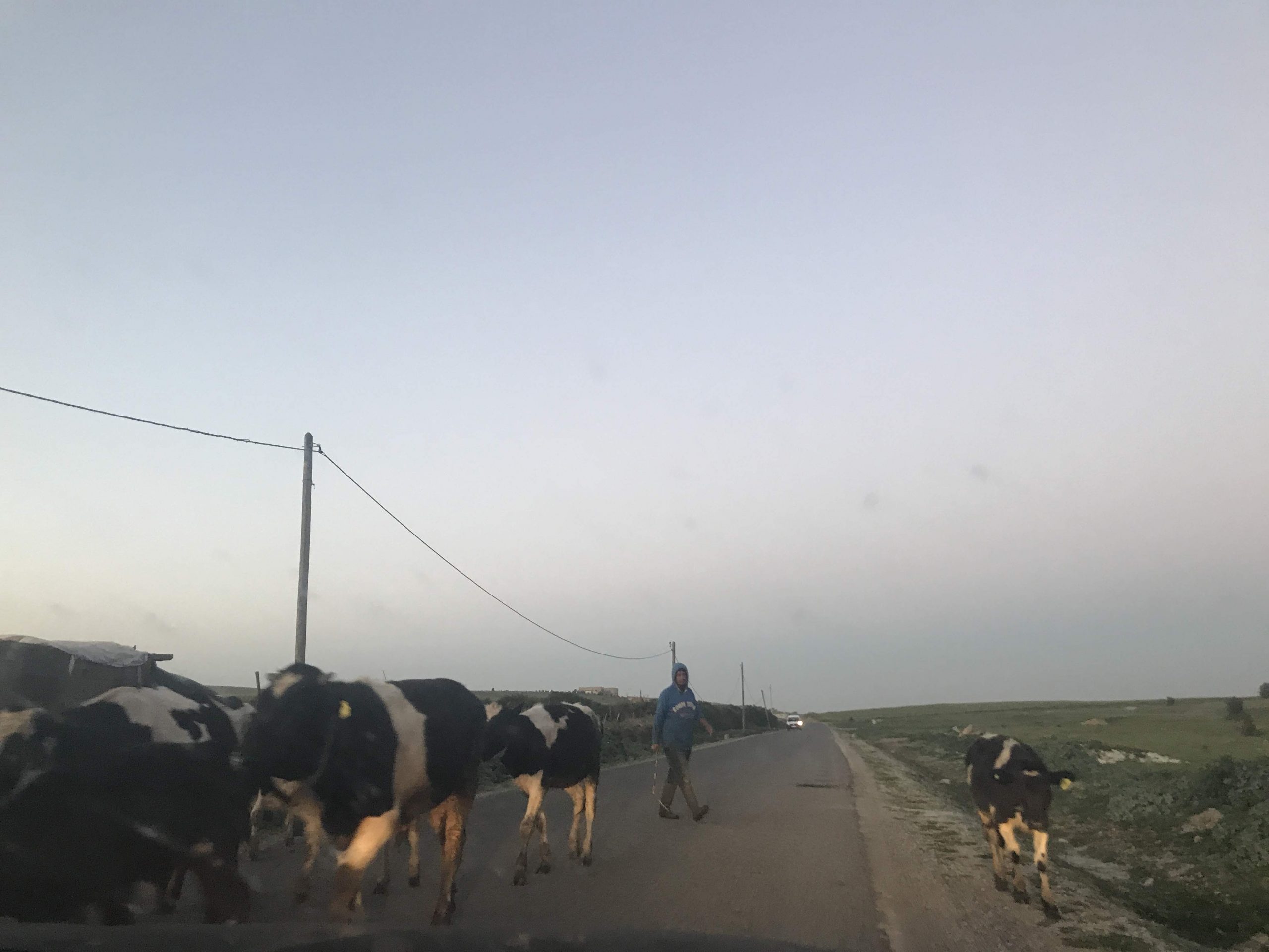 Ve středním a jižním Maroku toto neuvidíte. Maximálně v únoru kvetoucí mandloně, zaprášené arganovníky a palmové oázy. Jinak převládá šedá a hnědá barva polopouště a hor. Rozhodně neuvidíte trávu, obilí a … krávy. Kráva, na rozdíl od marocké kozy křížené se stromokocurem, na arganovník nevyšplhá a chcípla by tam hlady.