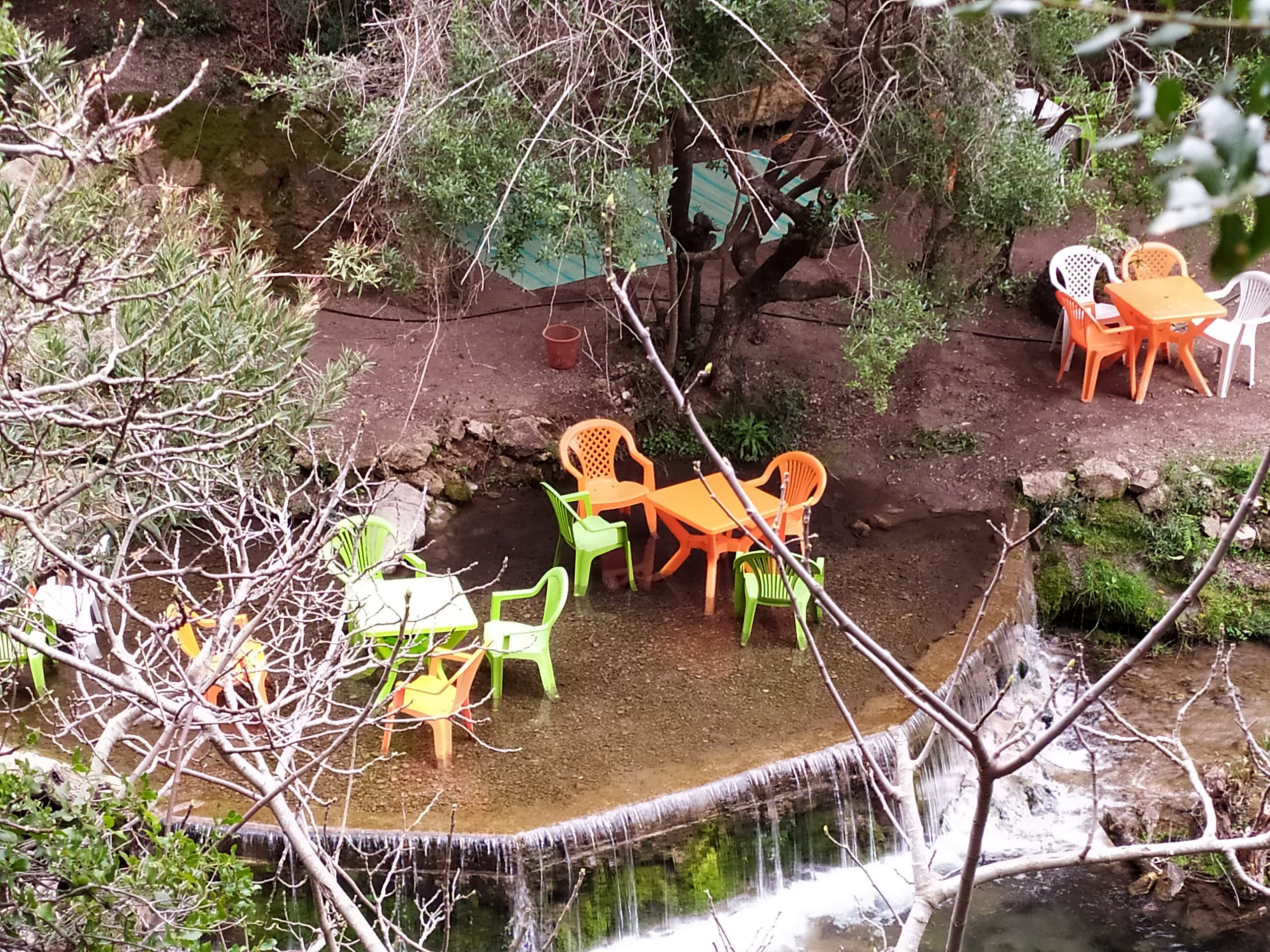 Kdekoli v Maroku, narazíte-li na nějaký vodní tok, narazíte zároveň na nemožnost vyfotit si čistě přírodní panorama. Do každého záběru se vám připletou veselé barevné plastové židličky.