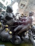 Abyste nebyli informačně ochuzeni, mám pro vás galerii. Jako každá slušná prosperující firma se Fendi angažuje na poli sociální odpovědnosti. Jeho aktivita je nádherná: Fendi for fountains podporuje obnovu starých fontán Říma. V minulých letech investoval do obnovy římské Fontany di Trevi, a za to jsem ochotná mu odpustit i plytkost poslední, žluté letní Fan. Di Trevi jistě všichni znáte, tak vám ukážu jednu, která není tak slavná, ale je zajímavá, pro mnohé z nás aktuální a pravdivá: Ehekarussell, koloběh manželského života, v Norimberku. Račte do galerie.